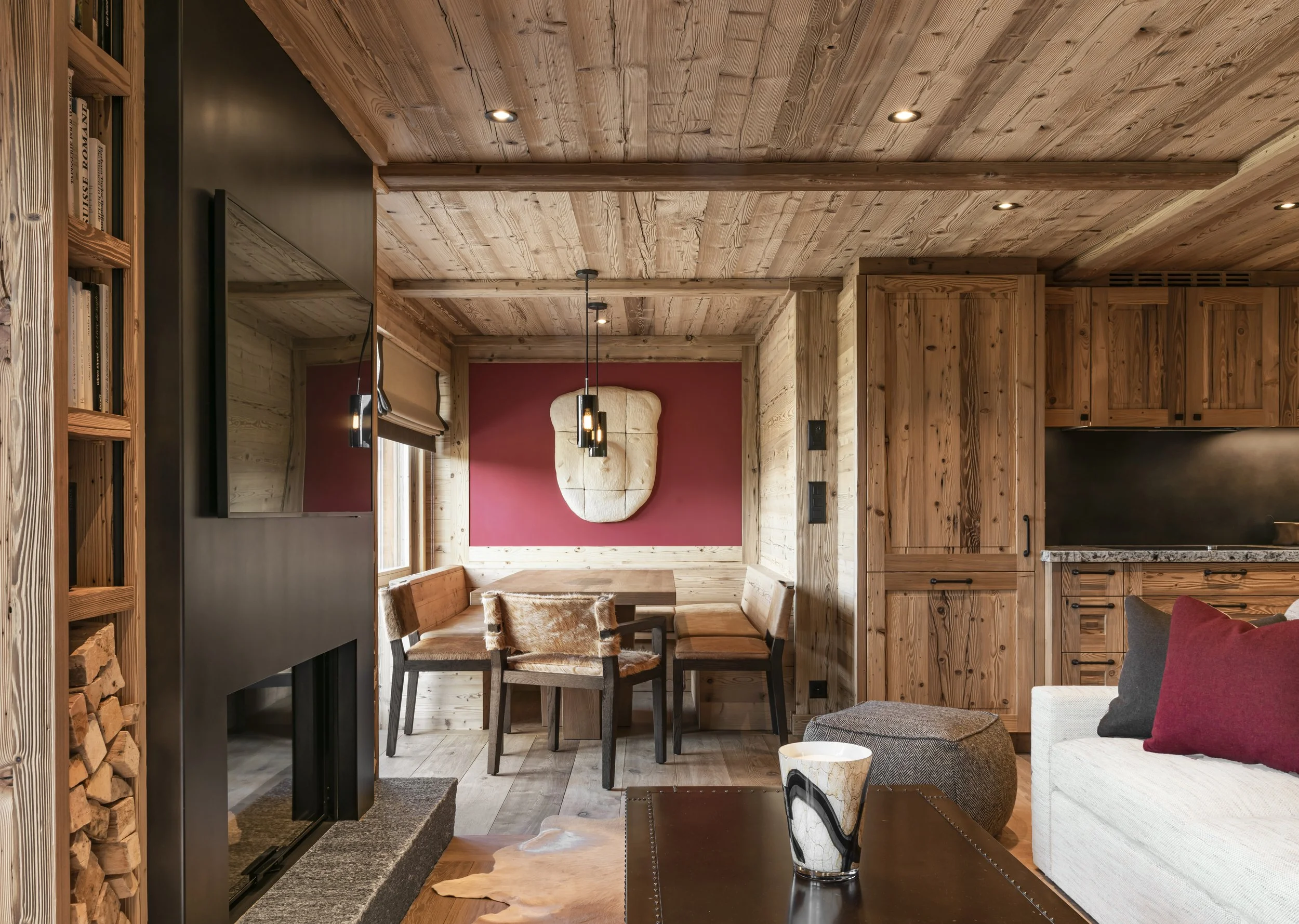 Un projet de décoration que j’ai géré pour un chalet dans les Alpes suisses. Chaque élément a été sélectionné pour créer un espace familial à la fois confortable et fonctionnel, tout en s'harmonisant avec l'architecture du chalet.