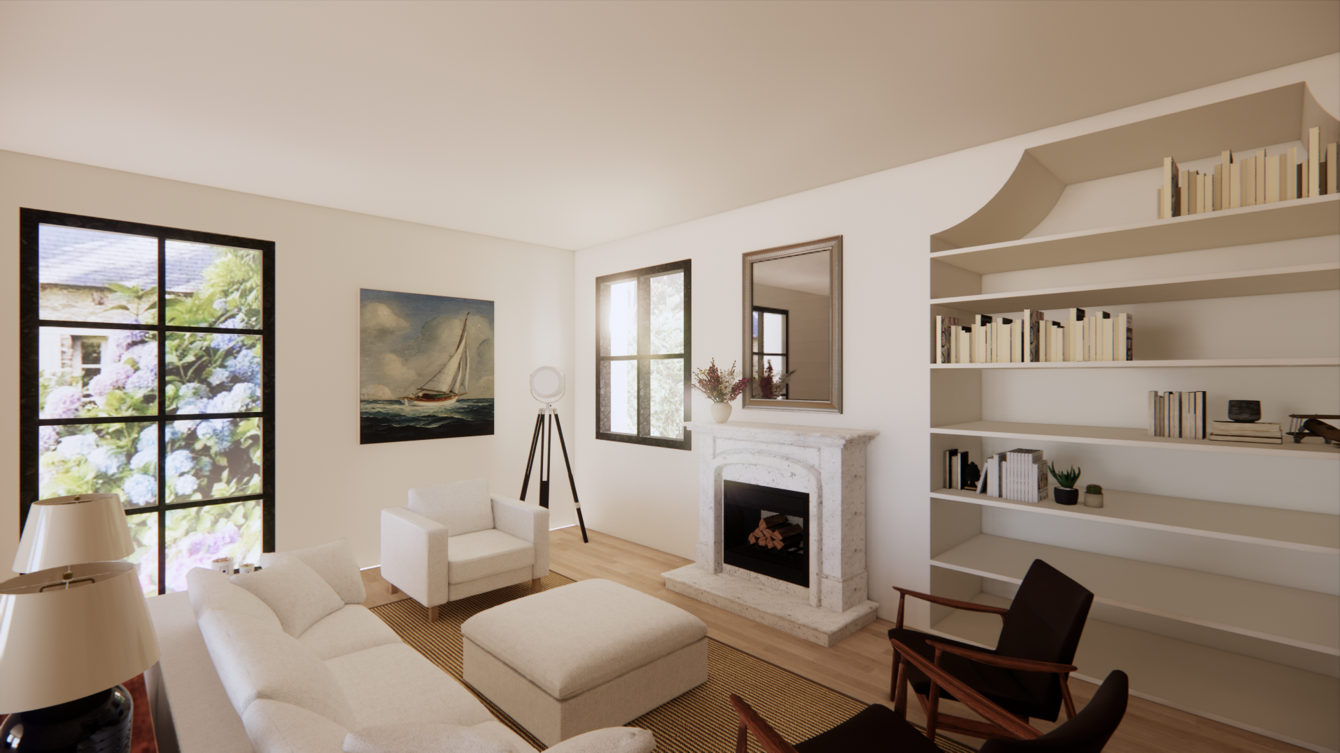 Ce projet m'a permis d'explorer mon style personnel. J'ai choisi de me recentrer sur un style qui m'est profondément familier : celui de la Nouvelle-Angleterre coloniale. Les toits en bardeaux de cèdre, les boiseries, les jardins d'hortensias en fleurs, le linge de maison et les tons neutres évoquent le lieu où j'ai grandi. Voici un petit bout de chez moi, partagé avec vous.